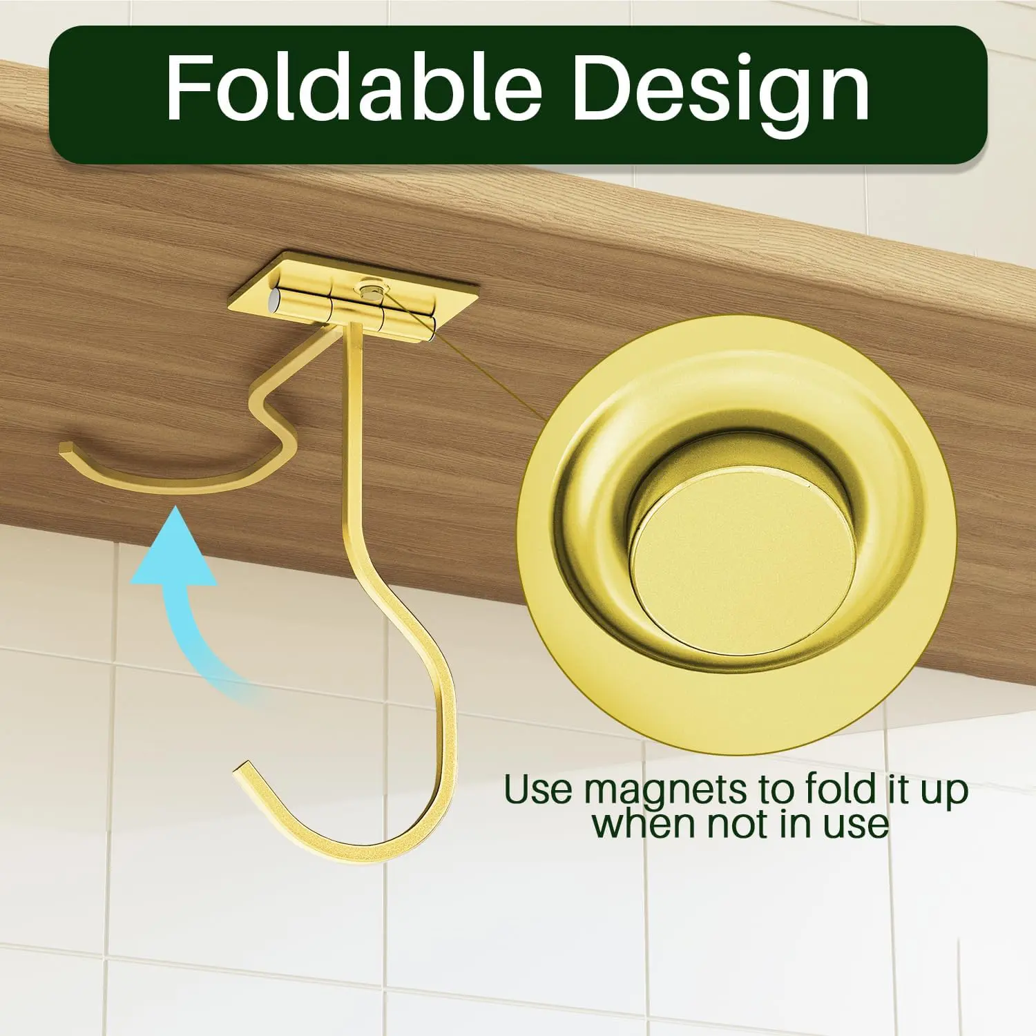 Den fällbara kroken hålls på plats med inbyggda magneter när den inte används, så den är helt ur sikte när du inte behöver den.