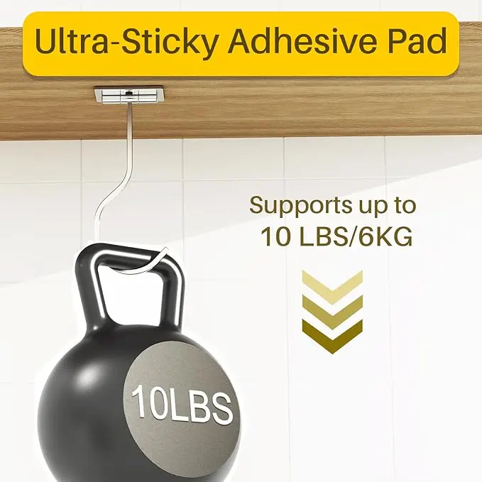 Den monteras på sekunder utan verktyg med extra stark självhäftande tejp och sitter stabilt även vid hög belastning. Perfekt för kök, badrum, tvättstuga, garderob, husbil eller studentboende.