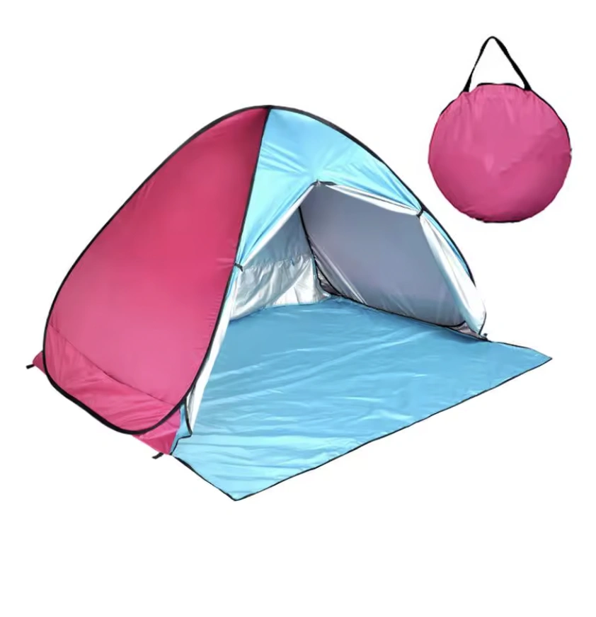 Tältet är tillverkat i slitstarkt material med silverbelagd duk som hjälper till att blockera UV-strålar och skydda mot fukt. Det gör tältet till ett smart val för dagar när solen steker eller marken känns lite rå och fuktig. Den stabila ståltrådsramen ger bra stöd och hjälper tältet att stå stadigt under användning.