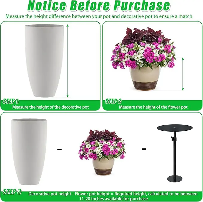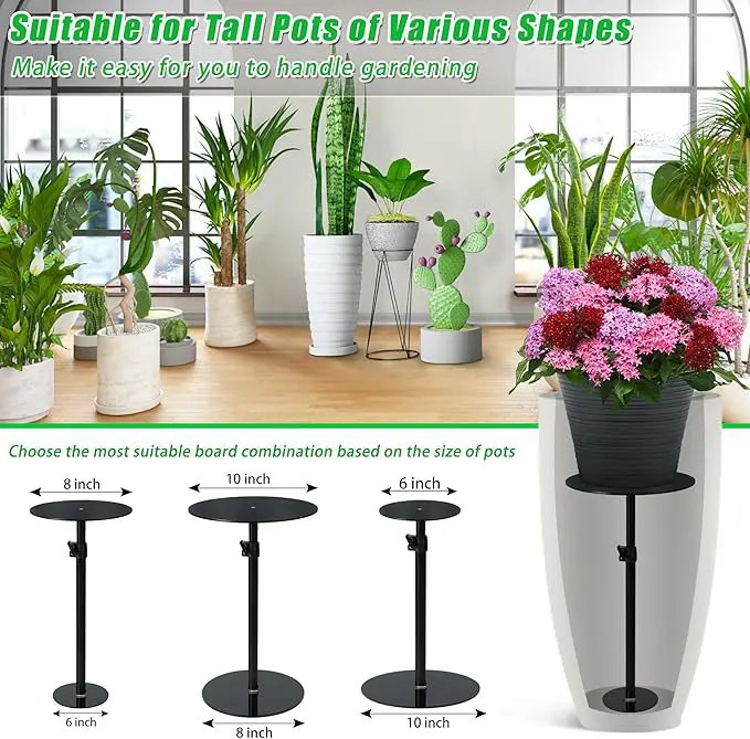 Den justerbara höjden gör att du enkelt kan anpassa höjaren efter krukans storlek.
