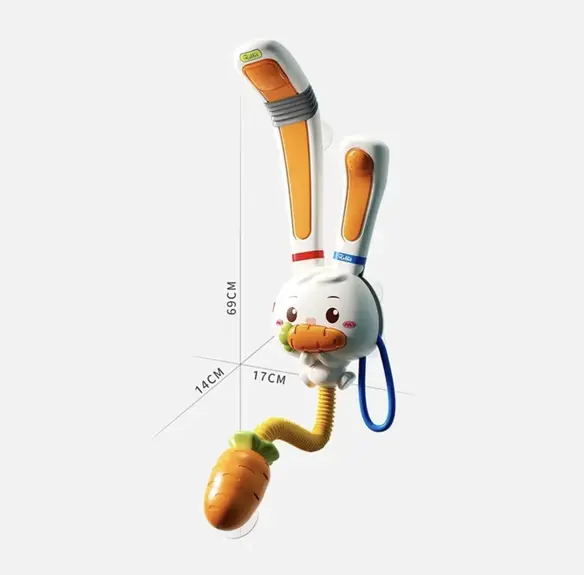 Rabbit-Flow är en portabel barndusch i lekfull design som förvandlar badet till en trygg, rolig och engagerande upplevelse för ditt barn. Med ett mjukt vattenflöde och enkel användning blir det både lek och funktion i ett.
