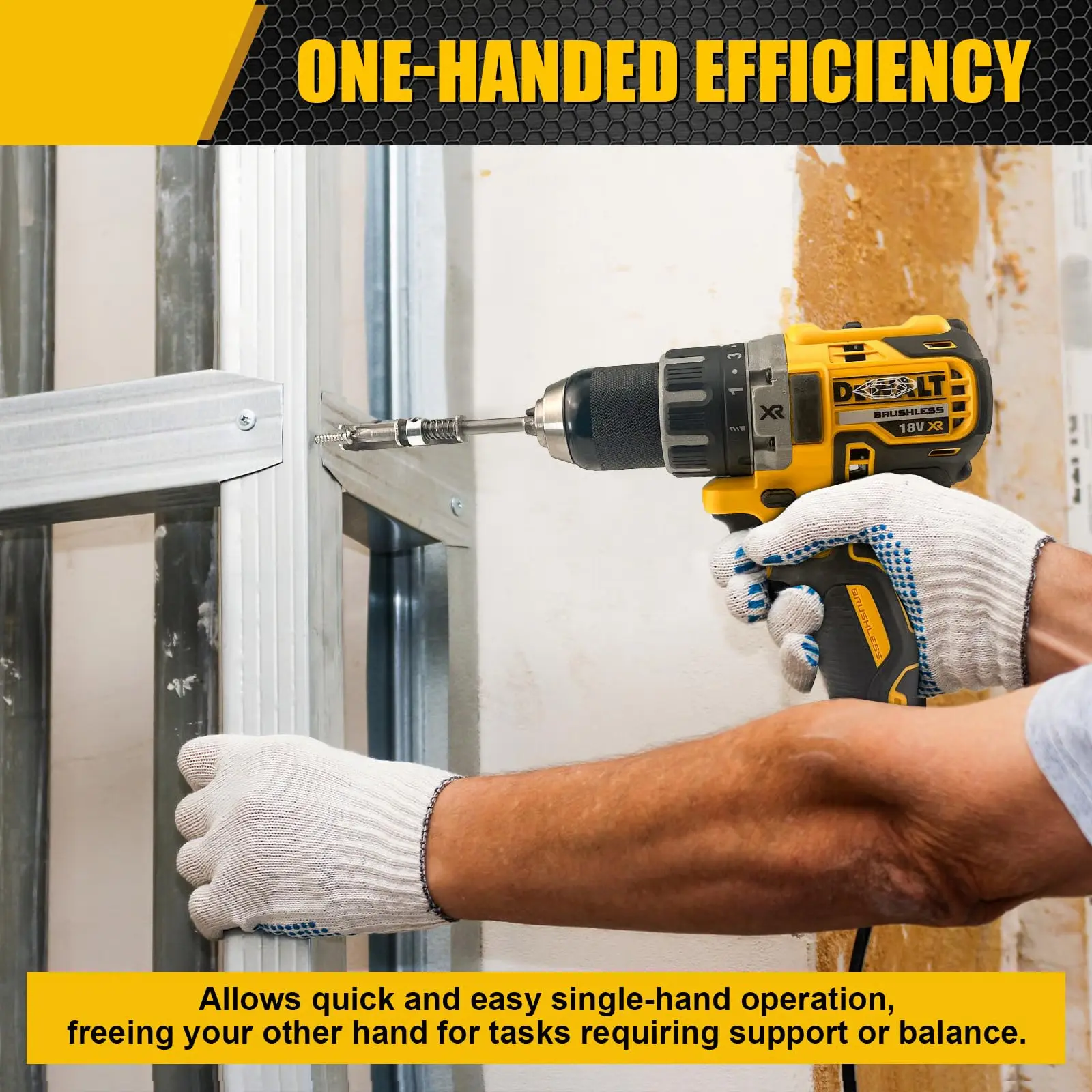 Designad för arbete med en hand, så att den andra handen kan hålla balansen, stödja material eller nå verktyg. Du slipper avbryta jobbet för att plocka upp tappade skruvar – allt flyter på smidigare.