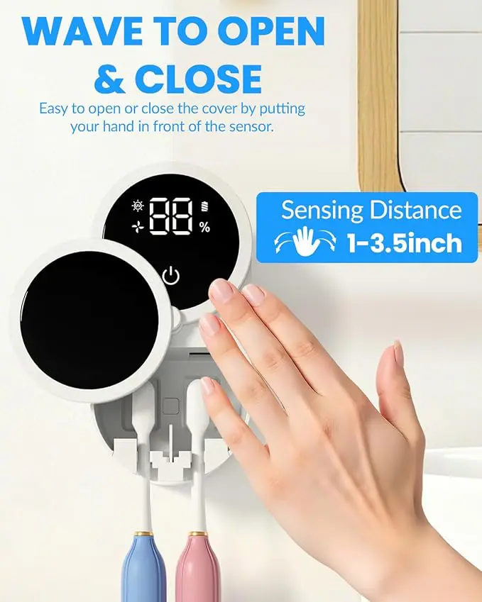 När locket stängs aktiveras den automatiska rengöringsfunktionen, samtidigt som den varma lufttorkningen hjälper till att minska fukt på borsten. Det ger en fräschare förvaring och en mer hygienisk känsla, utan att tandborstarna står öppet på handfatet eller ligger och samlar smuts.