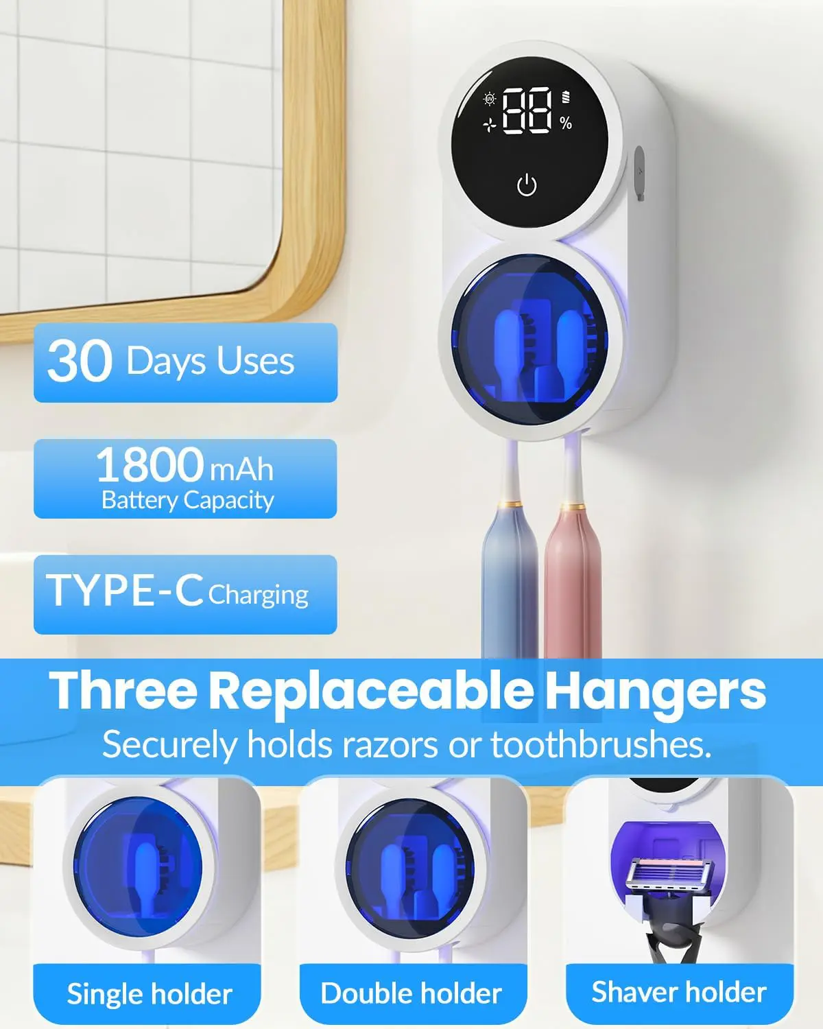• Produkt: Vägghängd tandborsthållare med automatisk rengöring och torkfunktion