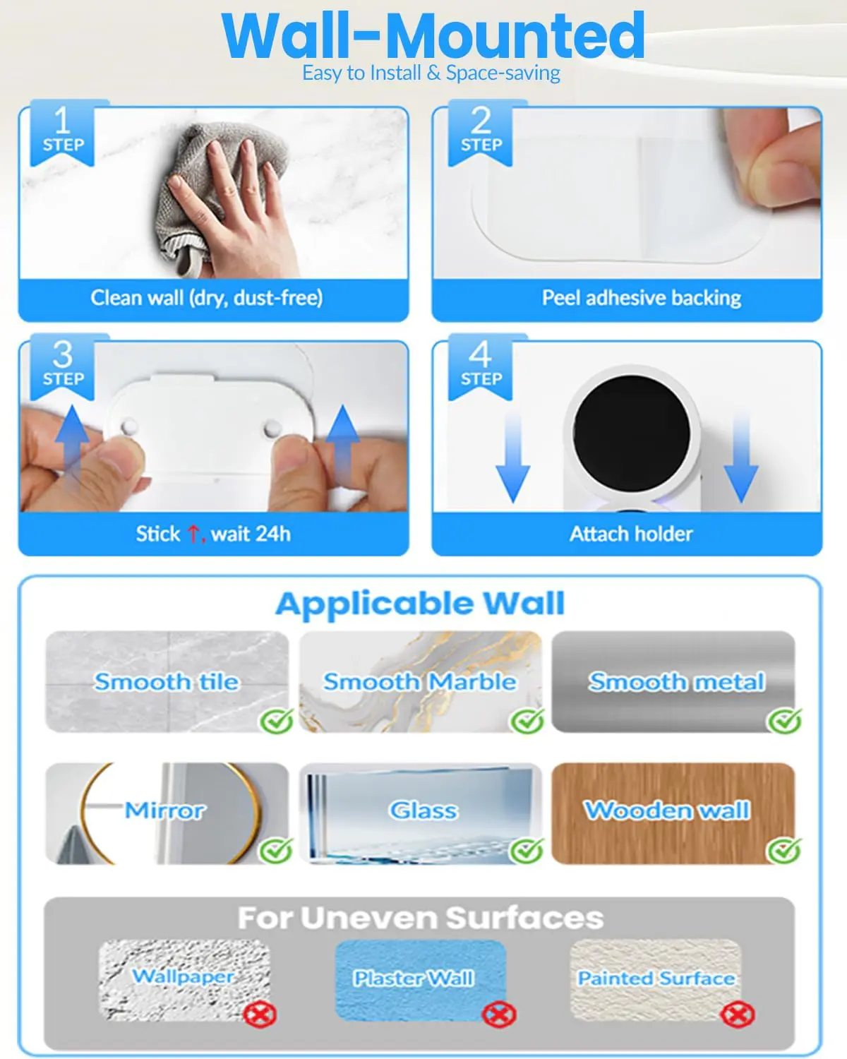• Montering: Väggmonterad (inga verktyg krävs)