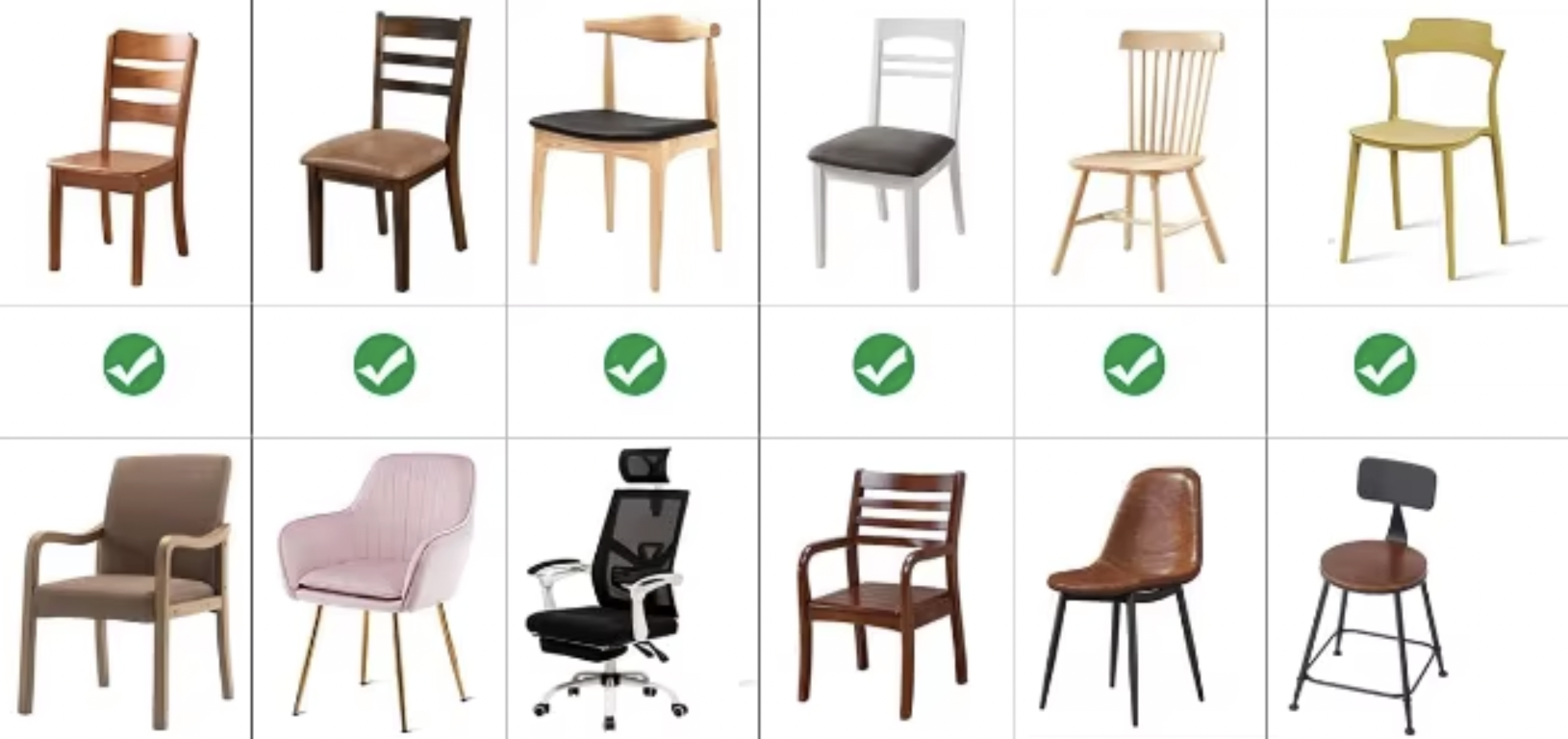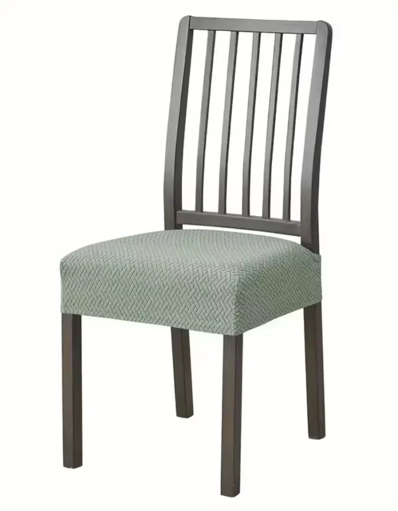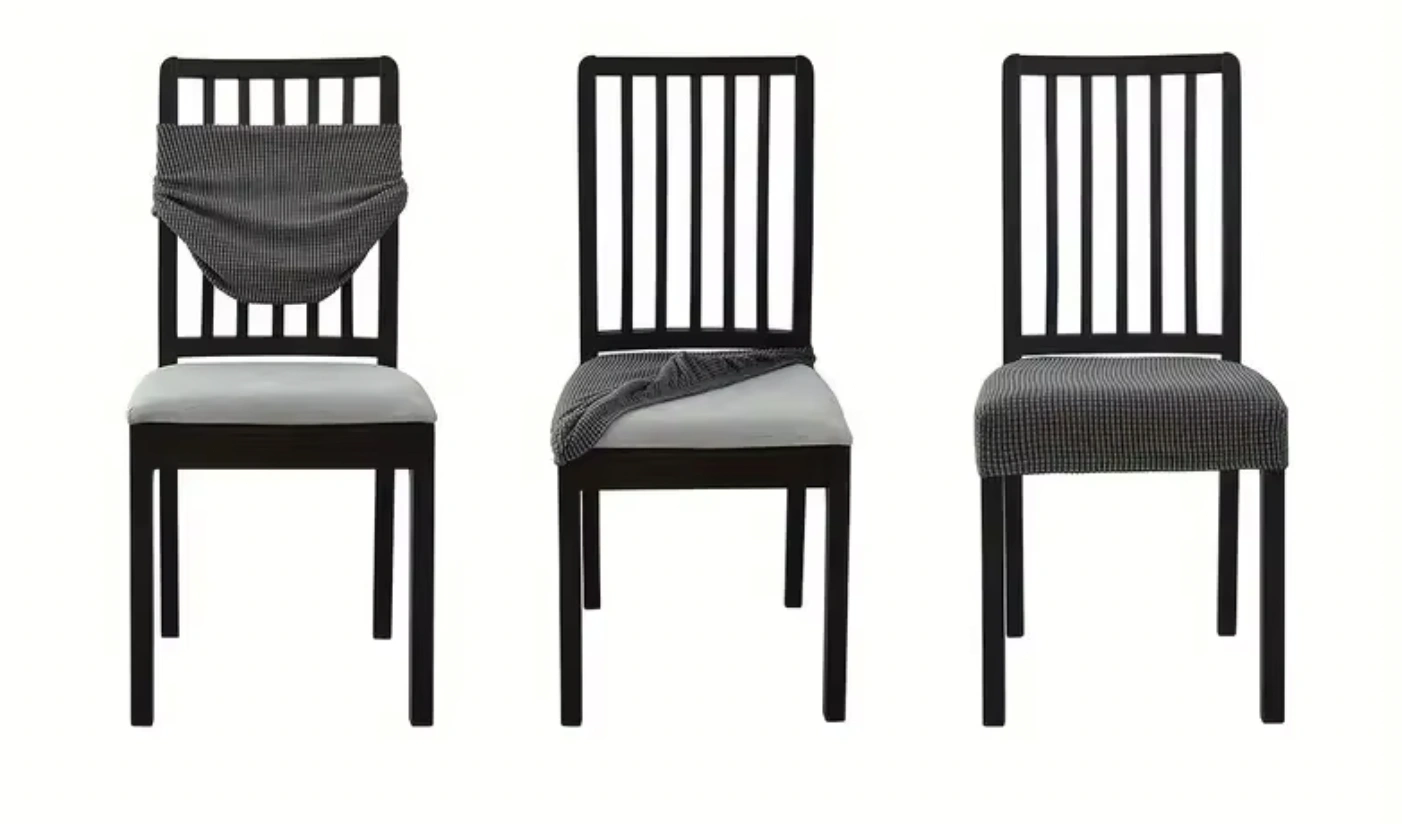 Det elastiska materialet gör att skydden formar sig efter stolen och sitter på plats även när någon faktiskt använder den. Ja, även barn. Ja, även middagsgäster som rör sig för mycket.