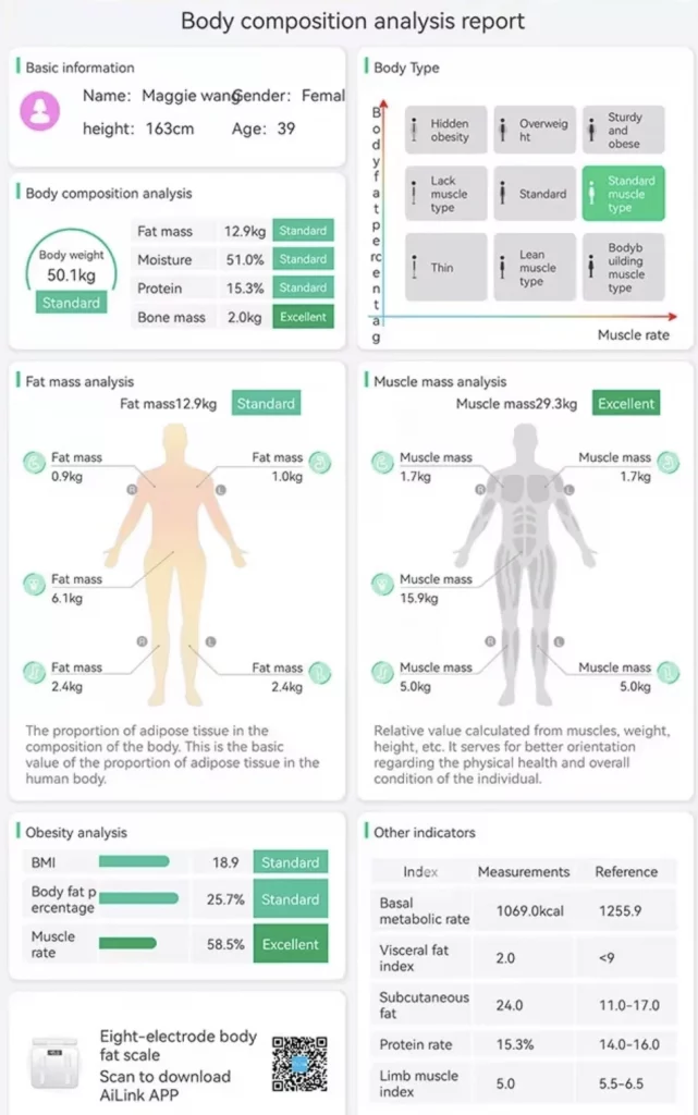 Vågen stödjer upp till 24 användarprofiler, vilket gör den perfekt för familjer eller delade hushåll där alla vill följa sin egen resa. För dig som vill ha full överblick går det även att ta fram detaljerade kroppskompositionsrapporter, redo att sparas eller skrivas ut via Bluetooth.
