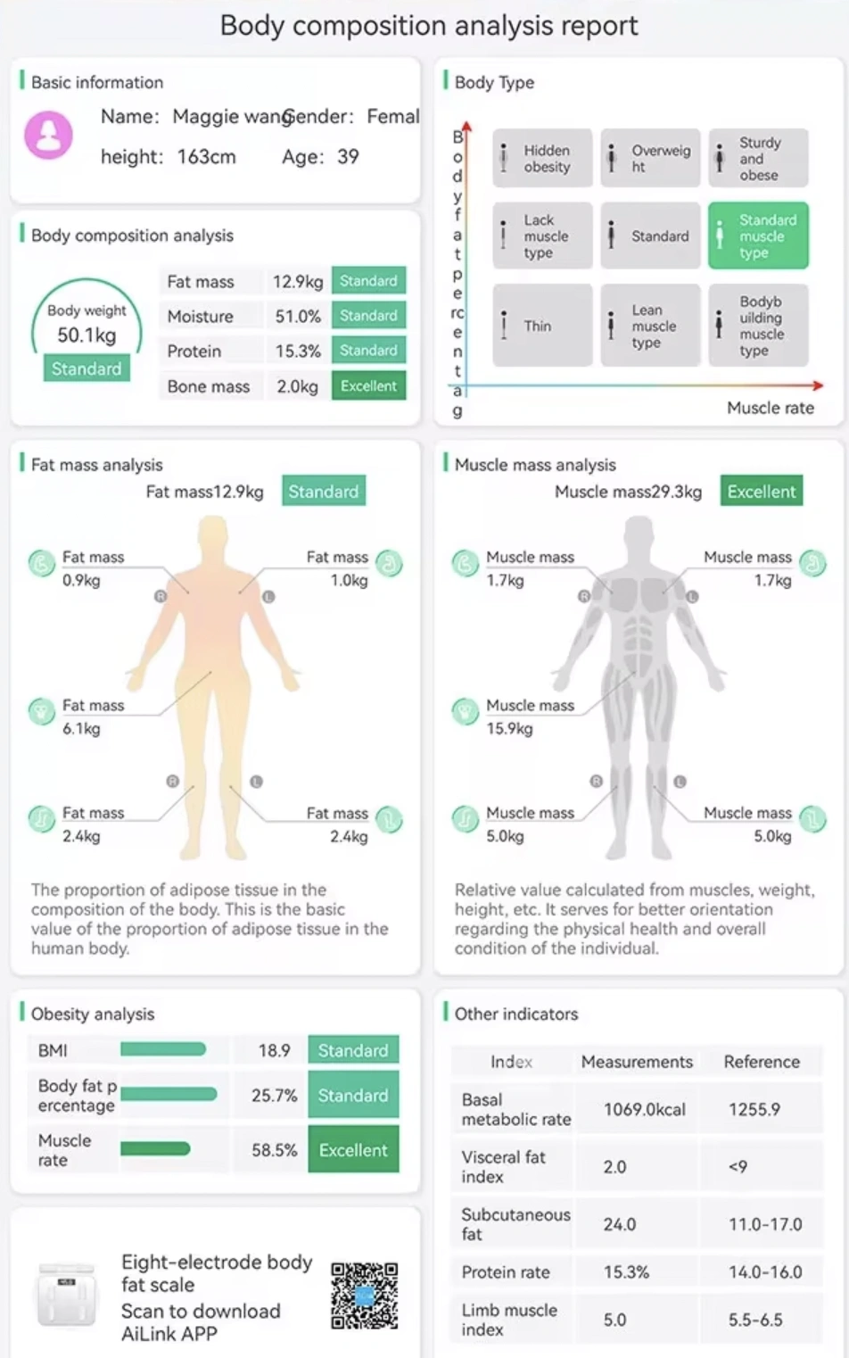 Med mätning av 18 kroppskompositionsvärden får du konkreta data som hjälper dig att justera träning, kost och vardagsvanor. Istället för att gissa kan du följa utvecklingen svart på vitt och fatta bättre beslut på vägen mot dina mål, oavsett om du vill gå ner i vikt, bygga muskler eller bara må bättre.