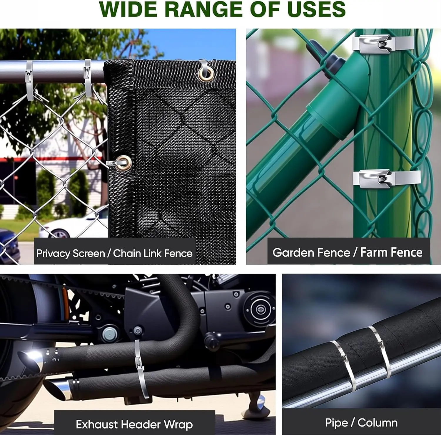 SteelGrip passar perfekt när du behöver montera, säkra eller samla sådant som måste sitta ordentligt över tid. Använd dem till exempel för att sätta upp stängsel, fästa nät mot stolpar, säkra kablar och ledningar, hålla ihop rör och slangar eller bygga enklare konstruktioner som djurburar och hönsgårdar. De fungerar också utmärkt för garage, verkstad, fordon och andra miljöer där vanliga plastbuntband lätt blir för svaga eller slits ut för snabbt.