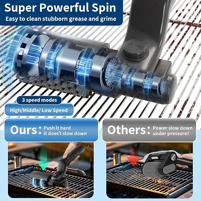 Den kraftfulla roterande borsten hjälper till att lösa upp fastbrända matrester, fett och smuts snabbt och smidigt. Perfekt för dig som vill kunna städa av grillen oftare och hålla efter under hela säsongen.